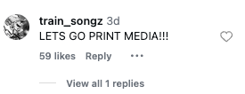 If you're still reading this, leave a positive comment about print media on her post and show her some love from the Train Songz community.